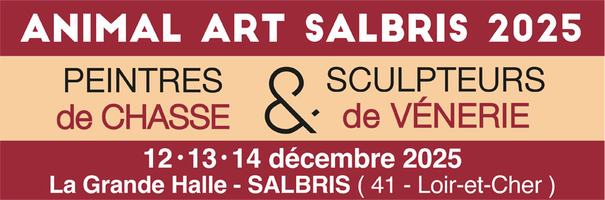 Vous souhaitez assister à ANIMAL ART SALBRIS 2025 2ème édition, en France, de l'exposition des Peintres & Sculpteurs de Chasse & de Vènerie qui aura lieu VENDREDI 12, SAMEDI 13 et DIMANCHE 14 DÉCEMBRE 2025 à SALBRIS, capitale française de la chasse (41 – Loir-et-Cher)